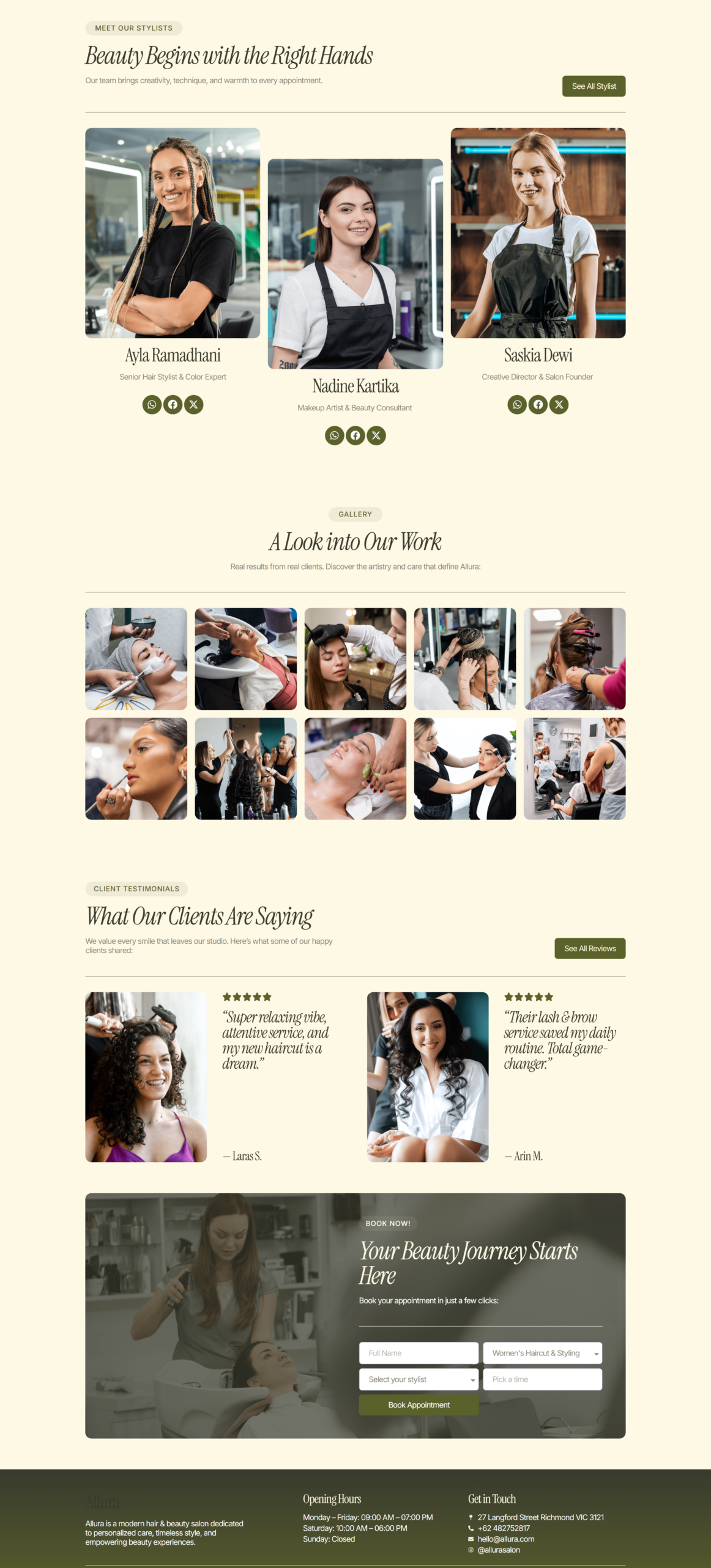 To create a website that authentically reflects the salon’s unique vibe warm, elevated, and full of personality. The design needed to build a strong visual identity, showcase the salon’s signature style and services, and draw in new clients who are looking for more than just a haircut.